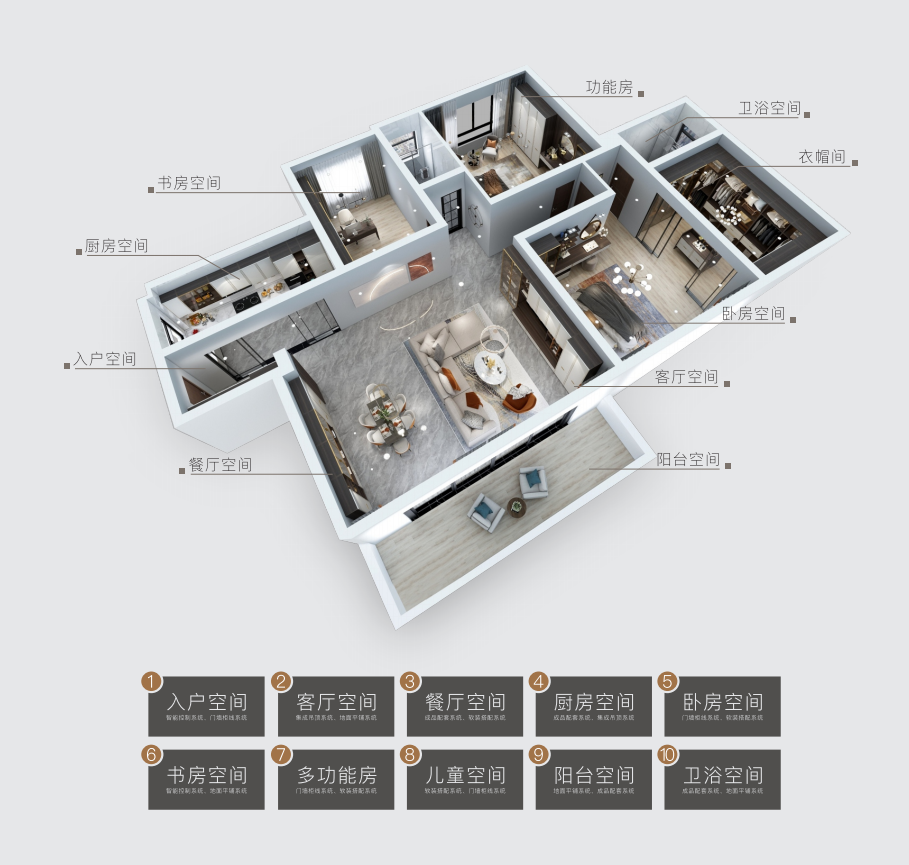 在产品体系构建上,把整家拆解为入户、客厅、厨房、餐厅、书房、卧室、多功能房、儿童房、卫浴和阳台十大空间,同时又将一个完整的空间分解为门墙柜线、集成吊顶、成品配套、软装搭配、地面平铺、智能控制六大系统,出色地解决家装设计、选材、施工、统筹、售后等全过程难题。
