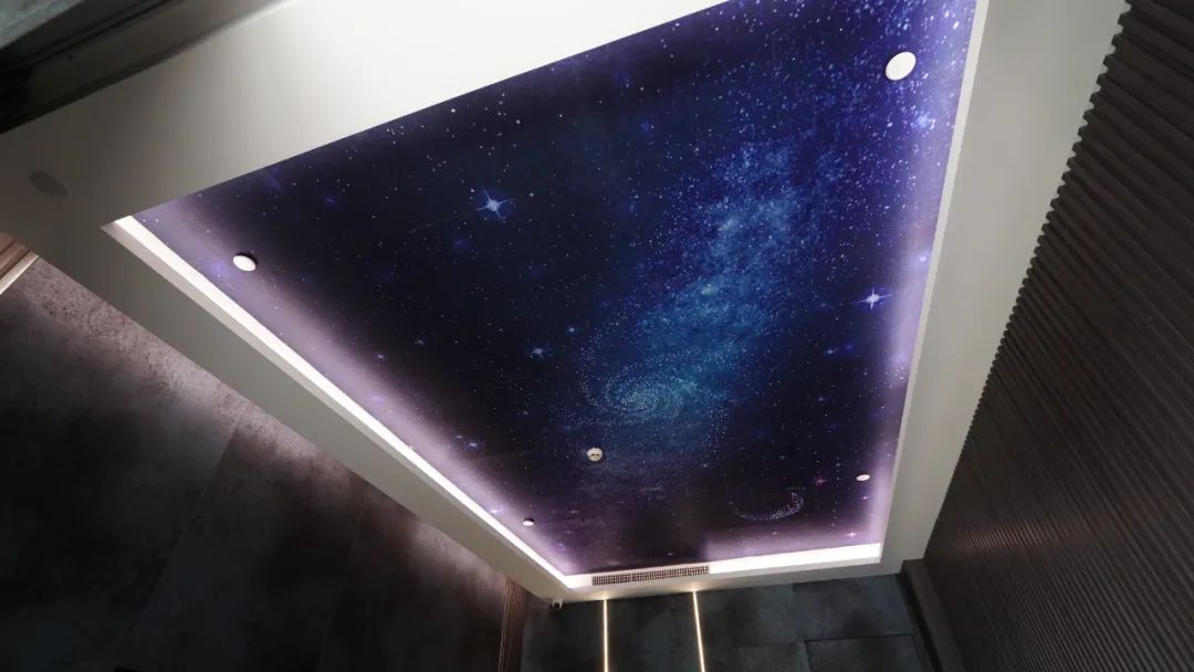 影音室可以沉浸式体验视听盛宴,智能星空吊顶,不必一步两步三步四步望着天,室内就能看星星一颗两颗三颗四颗连成线。