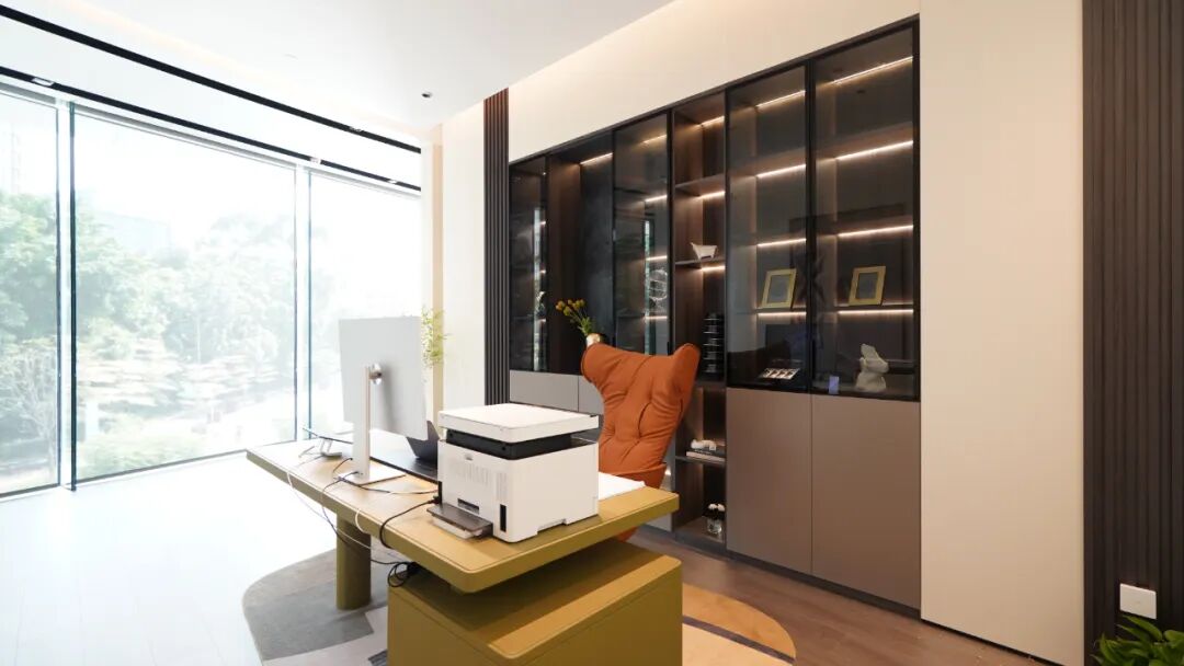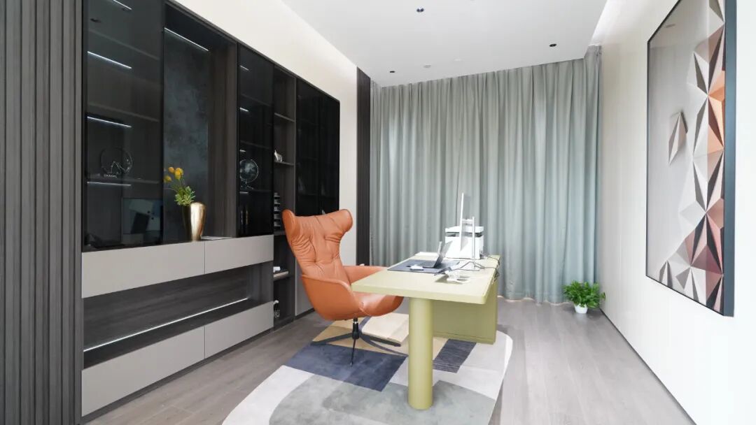 书房布置了华为PC和打印机,可以体验到智慧一体化办公,在这里真正实现了居家生活与科技完美结合,未来感满满。
