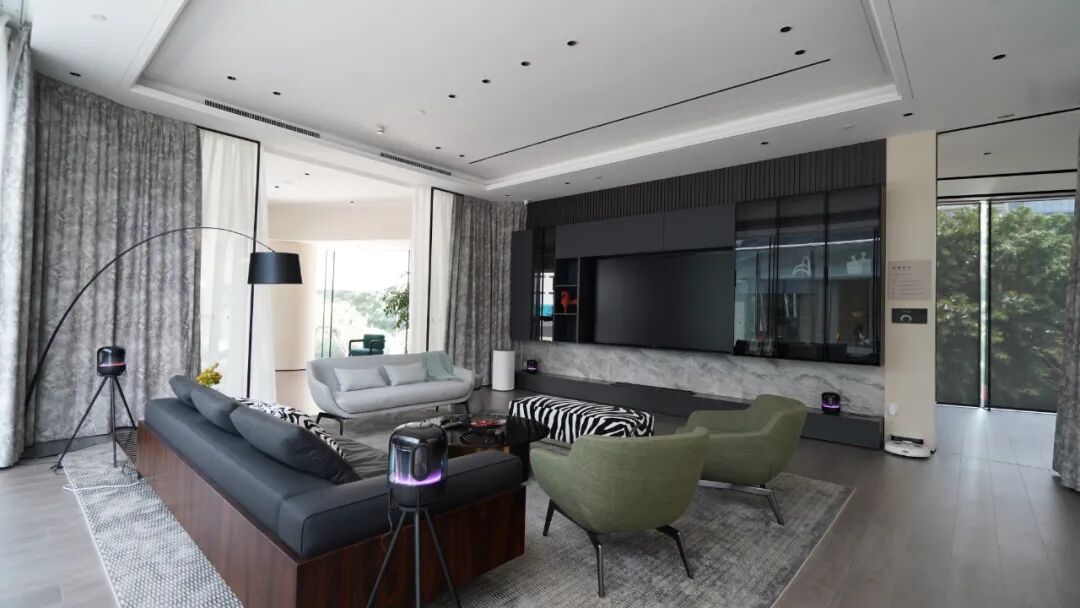 在二楼,复刻真实家居环境的全屋智能体验区更是惊喜。在场景的搭建过程中,美尼美提供了一站式整体空间解决方案,真实还原了客厅、厨房、书房、卧室、影音室、餐厅等生活场景,优化用户一站式智慧生活体验。