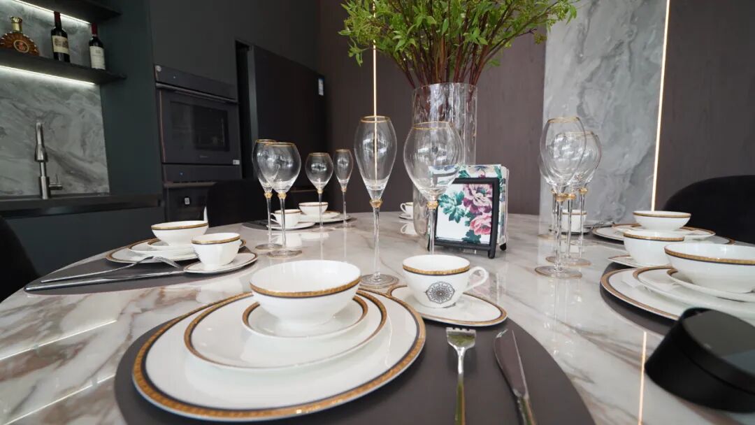 餐厅的灯光可根据不同场景需求调节,比如茶歇模式,灯光缓慢转变暖光模式,带来愉悦的视觉心灵享受。