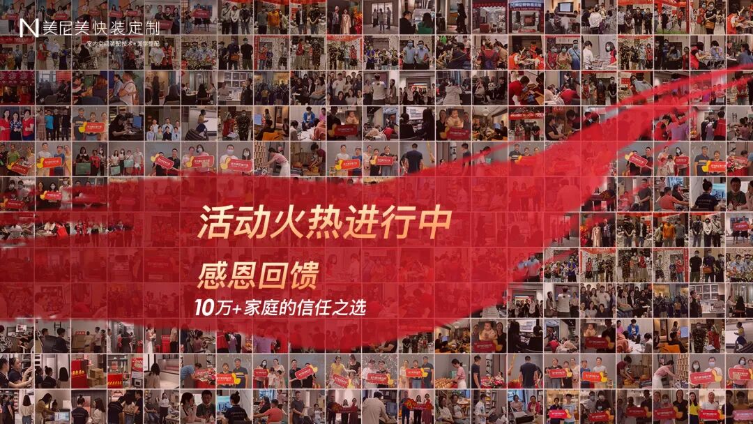随着美尼美十周年庆全国联动促销完美收官,厂商携手同心同力,取得优秀的成绩。为了更好应对装修旺季的市场需求和回馈支持信任美尼美品牌的消费者,美尼美快装定制重磅推出美尼美超级品牌月•全民家装节活动,全力为全国经销商带来新势能,抢占金九银十装修旺季流量入口,开启新征程。