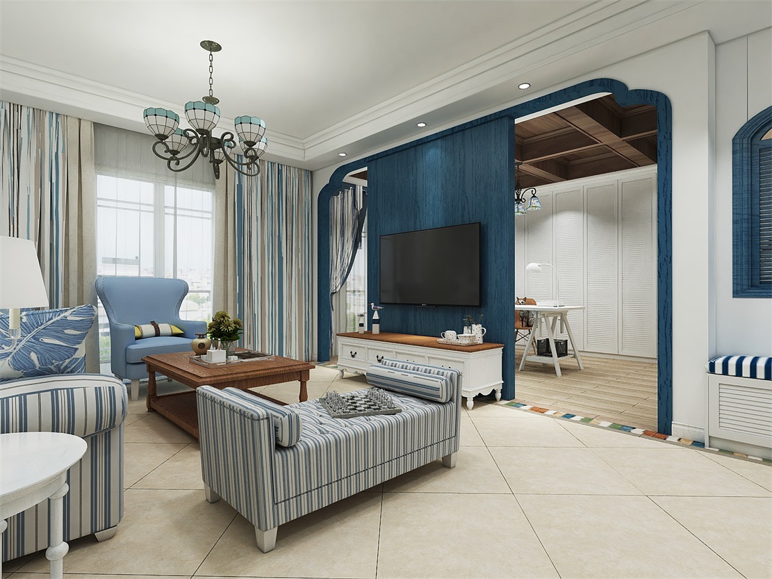 地中海很适合慵懒舒适地享受日常生活,总体搭配能让人仿佛置身沙滩、海洋,让疲于工作的年轻人享受到在家度假的感觉。